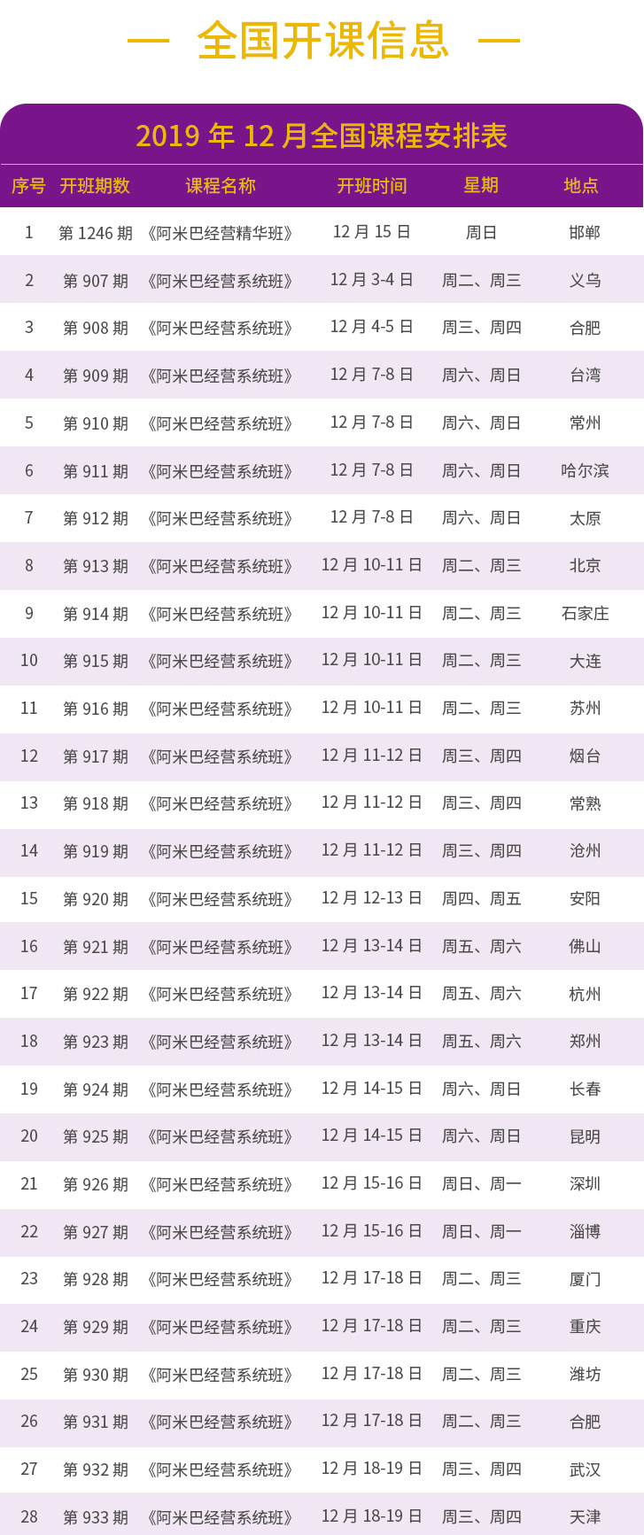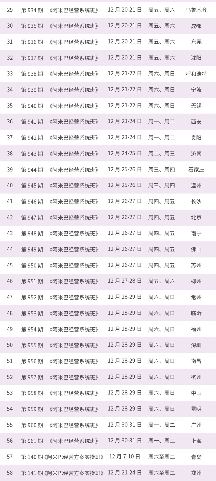 《阿米巴经营系统班》2019年12月全球课程表